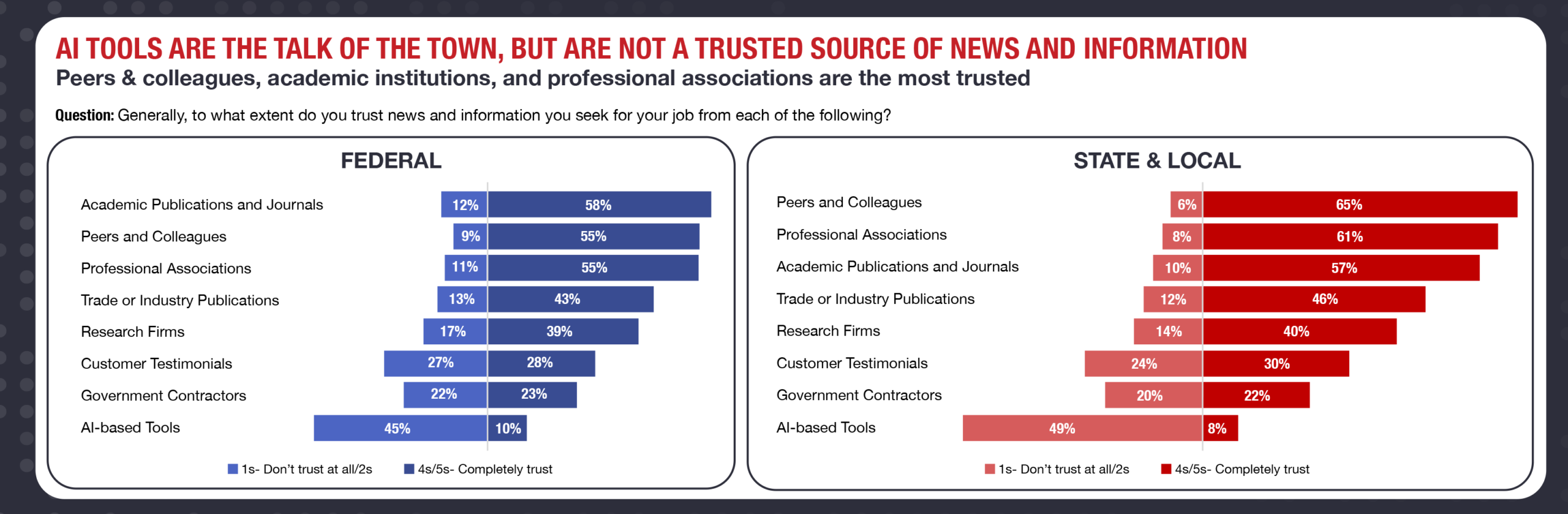 Get the latest insights, reports, and more delivered straight to your inbox! Keep up with current public sector sentiments. Subscribe today and begin receiving monthly updates, including current data/results from the Federal Market Monitor survey, delivered right to you.